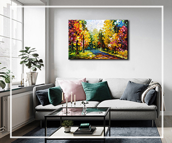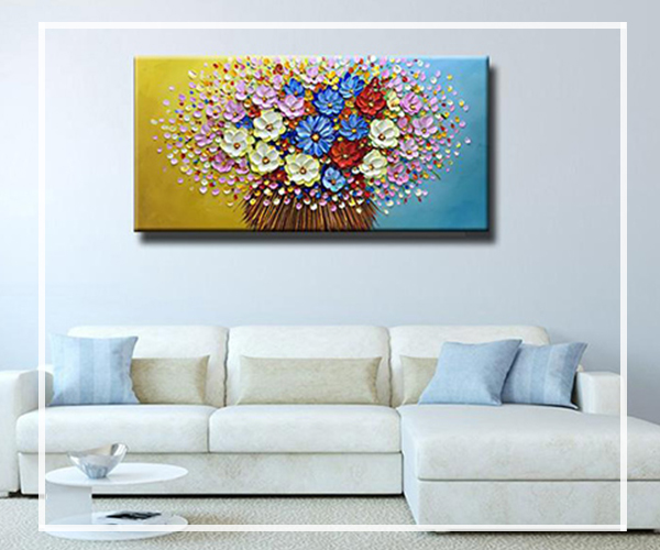 Abstract oil paintings have found their way back into our living rooms. Once thought of as formal, velvet sofas and floral art canvas had a renaissance in the 1960s when global decor was hot and colorful oil painting ruled.